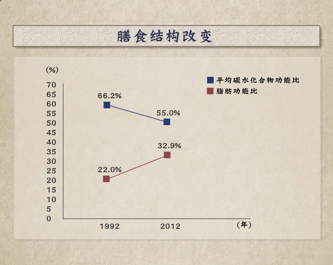 膳食因素對(duì)中國(guó)成年人心血管代謝性疾病死亡率的歸因比例有所下降,從1982年的62.2%下降到2012年的51.0%。但隨著總?cè)丝谠黾雍腿丝诶淆g化,不健康飲食所導(dǎo)致的心血管代謝性疾病死亡人數(shù)仍逐漸增加。